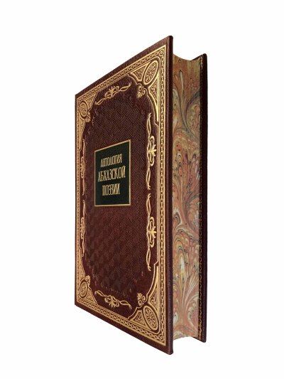В цельнокожаном переплете ручной работы с тиснением золотом. Дизайнерские обрезы и форзацы. Дарственная надпись на форзаце.
