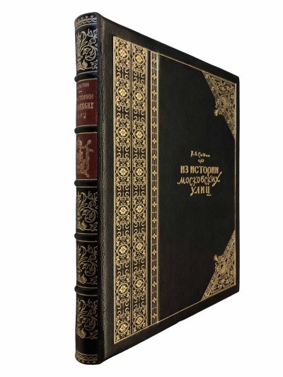 В цельнокожаном переплете ручной работы с золотым тиснением. Золотые обрезы. Дизайнерские форзацы.