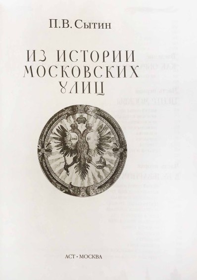 Книга известного знатока истории древней русской столицы П.В. Сытина «Из истории московских улиц» — очень подроб-ный и увлекательный рассказ обо всех улицах и площадях в пределах Садового кольца и прилегающих к нему районах.