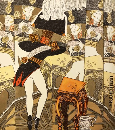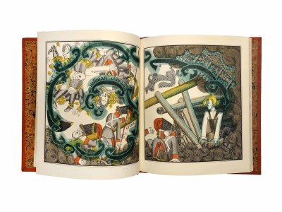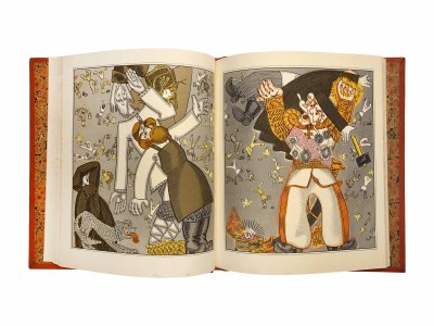 В цельнокожаном переплете ручной работы с тиснением золотом и инкрустацией кожей. Шелковое ляссе. Дизайнерский обрез.