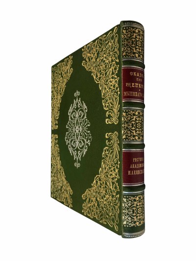 В цельнокожаном переплете ручной работы с тиснением золотом и инкрустацией кожей на передней крышке. Оригинальная обложка сохранена. Шелковые форзацы.