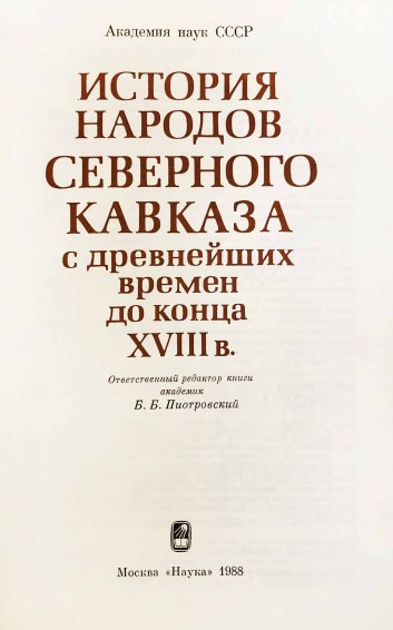 Книга представляет собой первую в советской исторической науке попытку обобщающего освещения истории северокавказских народов с древнейших времен до 1917 в. Труд написан крупнейшими учеными-кавказоведами Москвы, Ленинграда, северокавказских республик, краев и областей РСФСР, Грузинской ССР, опирается на марксистско-ленинскую методологию. Широкое использование многоязычных письменных источников и археологического материала позволили представить наглядную панораму сложнейших событий многовековой истории народов Северного Кавказа и очертить основные тенденции их социально-экономического, политического и культурного развития. Важное место в книге занимает изложение причин процесса сближения северокавказских народов с русским народом, приведшего к их вхождению в состав России.