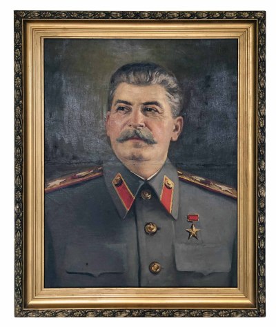 В 1957 году был развенчан культ личности Сталина. Следующие годы характеризовались всеобщим избавлением от наследия культа личности. Этот портрет смогли сохранить.