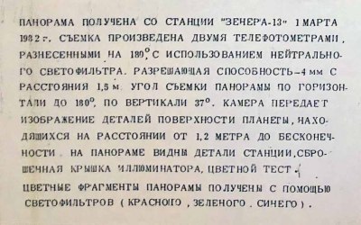 На вкладышах с фотографиями Венеры дана детальная информация про съёмку панорамы планеты. «Венера-13» — советская автоматическая межпланетная станция, запущенная по программе исследования планеты Венера.