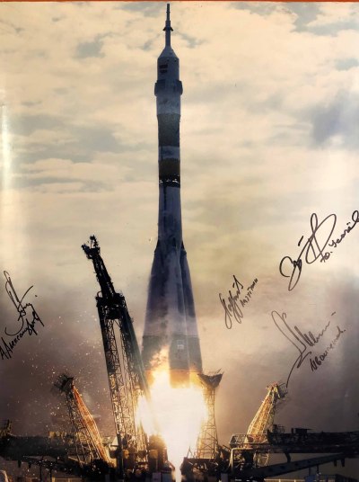 В альбоме есть фотография запуска ракето-носителя Союз с подписями космонавтов А. Александрова, А. Лазуткина, Ю. Усачёва и А. Иванченкова. Также фотографии поверхности Земли.