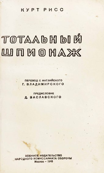 М.: Военное издательство Народного Комиссариата обороны 1945 год. Рисс К. Перевод с англ. Г. Владимирского. Предисловие Д. Заславского.