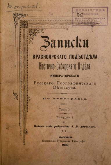 Записки Красноярского подотдела Восточно-Сибирского отдела Имп. Русского Географического Общества по этнографии