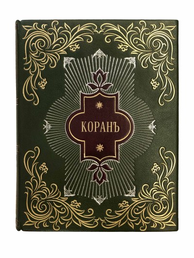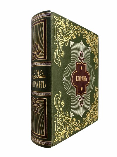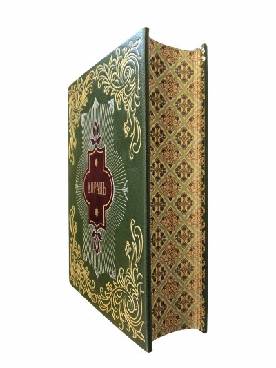 В цельнокожаном переплете ручной работы с золотым тиснением и инкрустацией кожей. Дизайнерские узорные обрезы и форзацы.