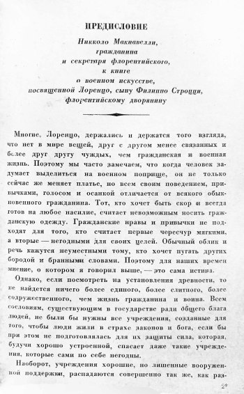В семи беседах о военном искусстве автор — философ и политик эпохи Ренессанса с большой глубиной и присущим ему умением анализирует военное искусство своего времени, определяя те кути развития, по которым оно должно идти в будущем. Знание истории, прекрасная ориентация в вопросах политических и глубина понимания чисто военного дела позволяют Макиавелли поднять ряд очень интересных вопросов об организации и применении вооруженных сил не только в рамках того времени, когда он жил, но и вне их, в условиях новых государственных образований и иных технических средств.