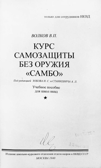 Из предисловия: Советские законы предоставляют право работникам органов НКВД применять огнестрельное оружие в борьбе с классовым врагом и преступниками. Вместе с тем, все инструкции, которыми руководствуются в этом случае наши пограничники, чекисты и работники милиции, категорически требуют применять оружие только в случаях крайней необходимости. Задачи расследования преступлений настоятельно диктуют необходимость лишь обезвредить преступника и задержать его для передачи в органы следствия и суда. Поэтому приемы самозащиты без оружия ("Самбо") имеют для работников НКВД громадное практическое значение и должны служить для каждого пограничника, чекиста и работника милиции верным, надежным оружием в борьбе с диверсантами, шпионами, бандитами и другими преступниками.