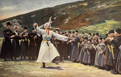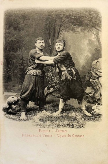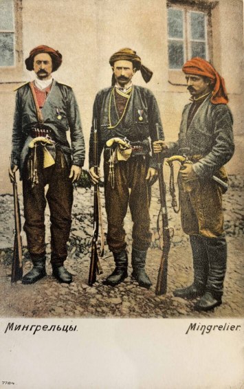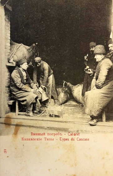 Интересные открытки с фактурными портретами. Примеры открыток: "Семейство князя Урузбиева", "Борцы", "Винный погреб", "Тифлисский муша", "Грузинский праздник и лезгинка" и многие другие открытки.