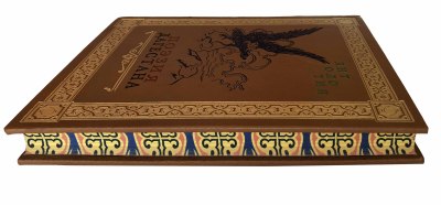 Книга в цельнокожаном переплете ручной работы с тиснением золотом.