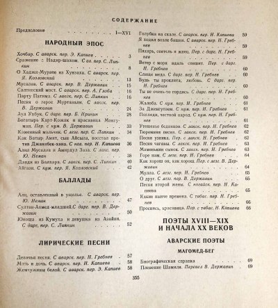 Одно из немногих изданий столь полно и подробно знакомящих русского читателя с образцами горской поэзии складывавшейся на протяжении веков. В историческом разрезе в книге представлена поэзия Дагестана начиная с безыменного народного творчества, произведений знаменитых певцов прошлого века, гремевших далеко за пределами родного аула, и заканчивая поэтами дореволюционного периода выбившимися «в люди», жившими и учившимися в столицах, поэтами нашего времени, ставшими признанными мастерами. В книге собраны все жанры и поэтические формы: исторические песни, баллады, любовная лирика, разнообразные трудовые и обрядовые, игровые и шуточные песни, плачи и колыбельные, детские песенки.