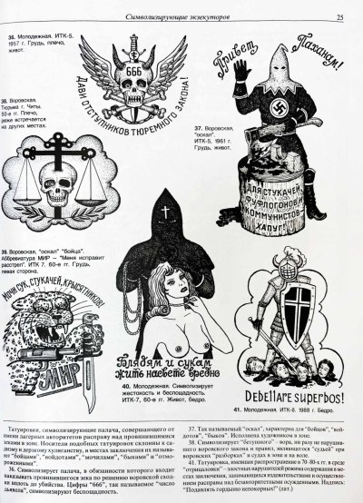Для страны, во многих городах и весях которой каждый третий мужчина отмотал срок, а каждый пятый его охранял, "нательная" живопись — татуировки уголовников — воистину является важнейшим из искусств, представляя собой документ великий и страшный. На протяжении многих десятилетий зековские наколки являются "открытой книгой" человеческой скорби, искусством подлинно народным, выстраданным в бескрайних просторах советских, а позже российских зон.
