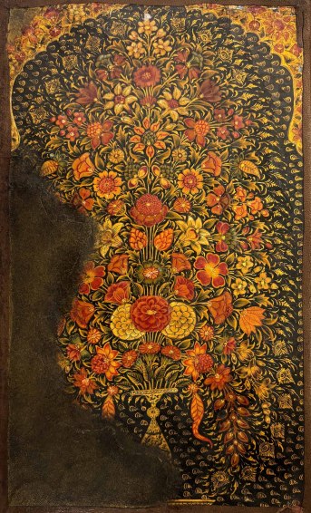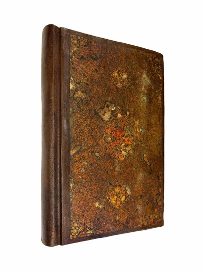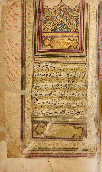 Переплет украшен растительным орнаментом. Некоторые страницы Корана оформлены изящным орнаментом, выполненным жидким золотом и краской. Есть сертификат.