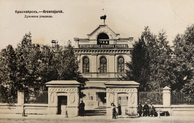 Примеры изображений: Духовное училище, Окрестности Красноярска, Предместье Теребиловка, Река Енисей, Железнодорожный мост через Енисей и другие виды города и его окрестностей.
