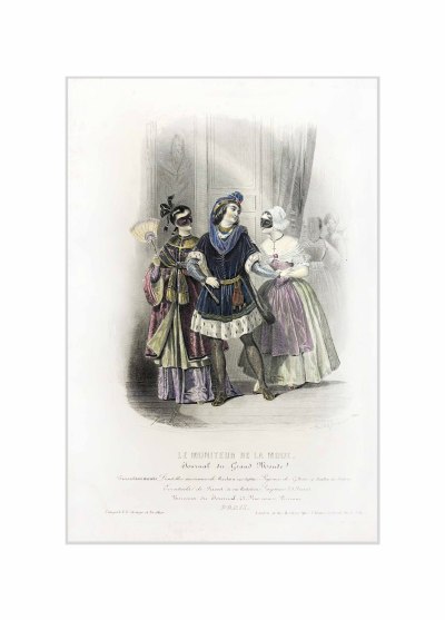 Гравюры дают представление о той ситуации, в которой был уместен определённый вид одежды: дамы в прогулочных платьях на фоне пейзажей, в визитных платьях — в уютных гостиных, в бальных нарядах — в сверкающих зеркальных залах, в простых платьях для отдыха и прогулок у воды — в живописных уголках природы и т.д.