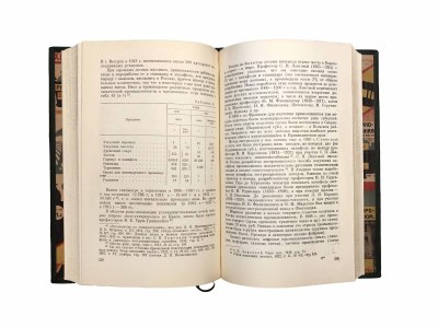 В цельнокожаном переплете ручной работы с золотым тиснением. Иллюстрированные форзацы.