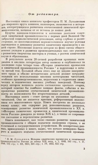 Настоящая книга написана профессором П. М. Лукьяновым для широкого круга химиков, инженеров, экономистов и историков, интересующихся развитием отечественной химической промышленности, начиная от ее истоков до наших дней.