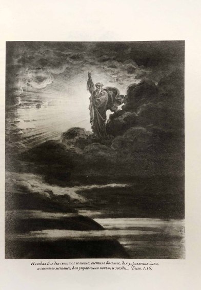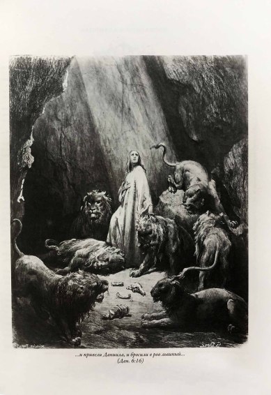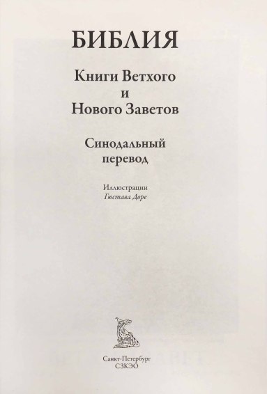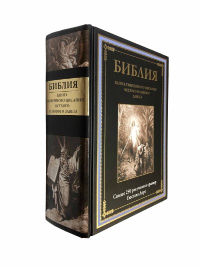 Впервые в России текст Библии, утвержденный Святейшим Синодом (так называемый Синодальный перевод) публикуется с оригинальными рисунками Гюстава Доре. Талантливый французский художник работал над ними два года для иллюстрированного издания Библии на немецком языке; этот перевод был выполнен писателем и раввином Людвигом Филиппсоном. Библия с гравюрами по рисункам Доре, вышедшая в 1866 г., стала настолько популярной, что через год оригинальные рисунки художника были опубликованы отдельным трехтомником. Именно они, а не выполненные по ним гравюры, воспроизводятся в настоящем издании.
