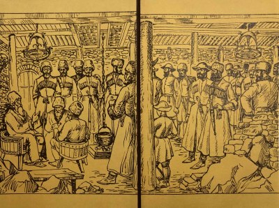В цельнокожаном переплете ручной работы с золотым тиснением. Дизайнерские иллюстрированные форзацы.