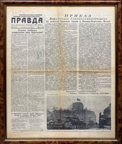 Первая страница газеты "Правда" за 1945 год. Окунуться в события первой половины XX века можно просматривая новости 1945 г. в вырезках из газет того времени.