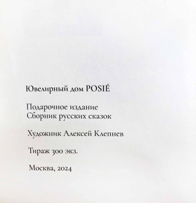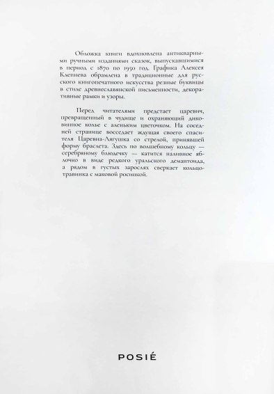 Книга «Волшебные сказки» художественное продолжение ювелирной истории POSIE, автором которого стал художник Алексей Клепнев. Его стиль отличает особый взгляд на многовековые мифологические сюжеты, которые будто оживают на страницах этой книги. Работы Алексея Клепнева впечатляют сложной, глубокой проработкой и нетривиальными сюжетами.