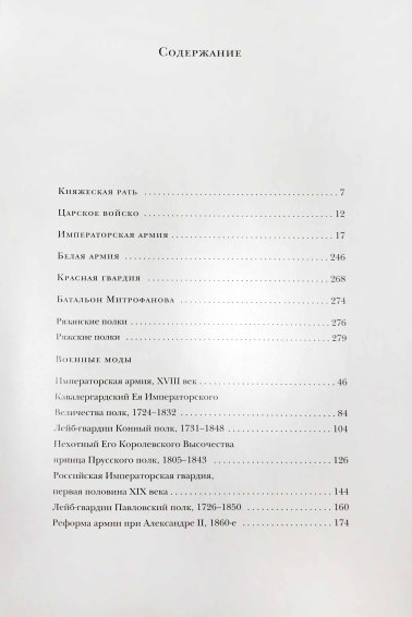 В книге показано изменение военной формы русской армии со времен Древней Руси до эпохи Гражданской войны. На страницах издания — оловянные солдатики, "дослужившиеся" до военной исторической миниатюры.