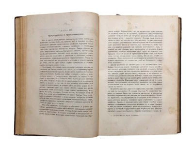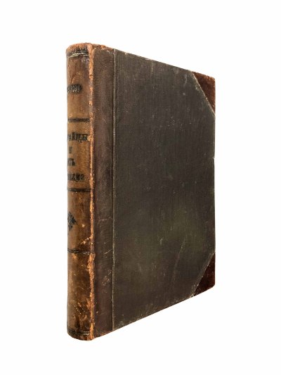 Крепкий полукожаный переплет эпохи. На верхнем поле титульного листа заштрихованный личный штемпель «Артур Юльевич фон Ландезен», на других страницах этот штемпель не зачеркнут.