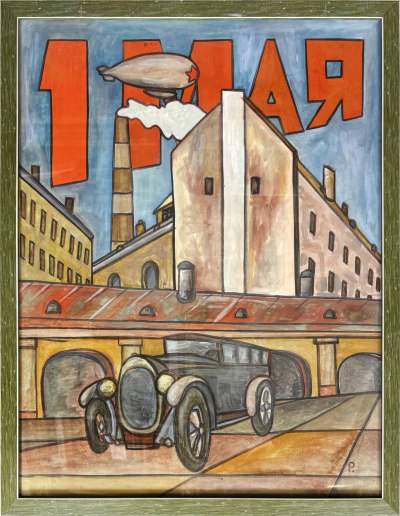 Этот рукописный плакат выполнен в стиле конструктивизма, характерном для авангардного искусства первых десятилетий XX века. Яркие цвета и динамичные линии передают дух стремления к новым высотам и прогрессу.
