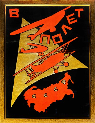 Этот рукописный плакат выполнен в стиле конструктивизма, характерном для авангардного искусства первых десятилетий XX века. Яркие цвета и динамичные линии передают дух стремления к новым высотам и прогрессу.