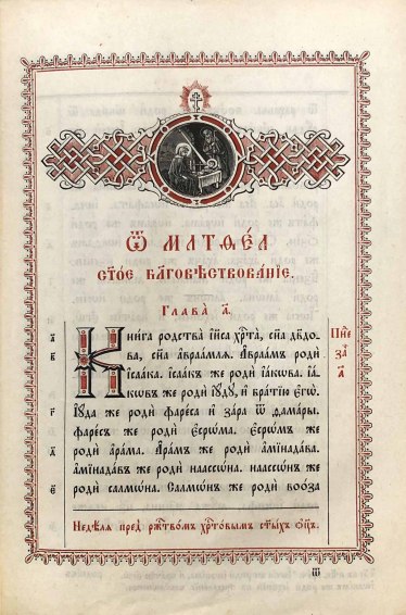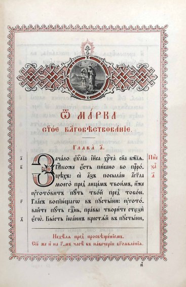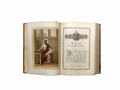 Прекрасно оформленное старинное издание Святого Евангелия на церковнославянском языке.