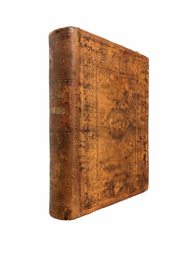 Издание выполнено в роскошном цельнокожаном переплёте ручной работы с изысканным тиснением. Внутри вас ждут четыре великолепные иллюстрации с изображениями евангелистов, выполненные в технике хромолитографии на отдельных листах. Печать на титуле.