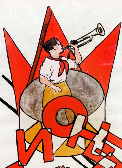 Автор плаката — Розалия Моисеевна Рабинович (1895-1988), советский живописец, график, сценограф и художник декоративно-прикладного искусства. Член и экспонент Общества художников-общественников. Произведения Розалии Рабинович находятся в Государственной Третьяковской галерее и ГМИИ им. А. С. Пушкина.