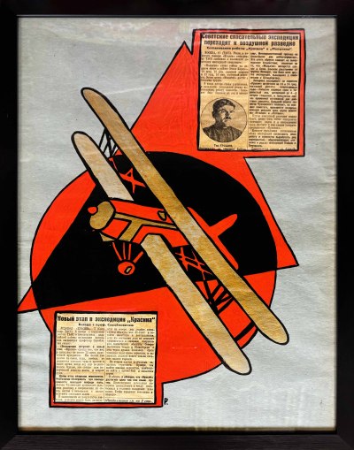 Этот рукописный плакат выполнен в стиле конструктивизма, характерном для авангардного искусства первых десятилетий XX века. Яркие цвета и динамичные линии передают дух стремления к новым высотам и прогрессу.
