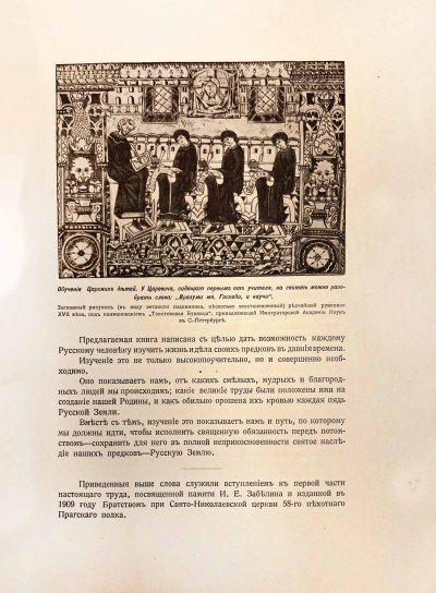 Автор, следуя пожеланию Николая II, украшает это издание многочисленными рисунками — как воспроизведениями с исторических картин современных ему русских художников, так и снимками с древних икон, рукописей, со стенописи храмов, старинных зданий, оружия и разного рода утвари. Подробно разбирая прошлое России и ее значение среди остальных государств, автор совершенно соглашается со взглядами на будущность русской земли, высказанными в начале XVI века старцем Елизарова монастыря Филофеем: «Два убо Рима падоша, а третий стоит, а четвертому не быти».