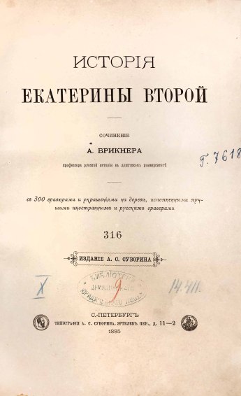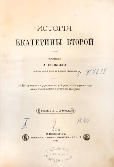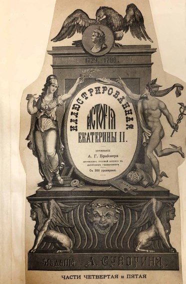 Из многочисленных работ А.Г. Брикнера одной из крупнейших была «История Екатерины II», в которой он особенно обстоятельно изложил историю внешних событий, войн и дипломатических событий этого периода. Уникальность настоящего издания состоит в богатом иллюстративном материале: это портреты членов императорской фамилии и сподвижников Екатерины, виды городов, сёл, дворцов, жилых домов, изображения батальных сцен, памятных медалей, визитных карточек, экипажей, памятников и многое др.