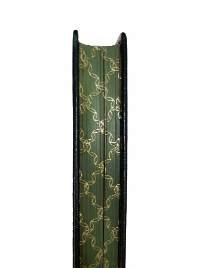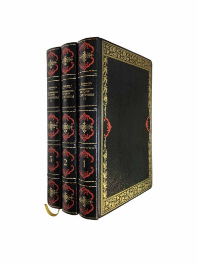 Книги в цельнокожаных переплетах с орнаментальным тиснением золотом и цветом. Узорные обрезы. Штампы на страницах.