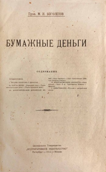 Это одна из основных работ экономиста Михаила Ивановича Боголепова (1879-1945) — первого ректора Института народного хозяйства в Петрограде, объединившего в себе все экономические учебные заведения города (в будущем из него вышел Ленинградский Инженерно-Экономический Институт).