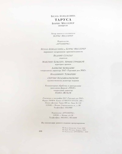 М.: Издательство "Артлибрис". 2005 год. Акварельные рисунки Бориса Мессерера. Автор макета и составитель — Борис Мессерер.