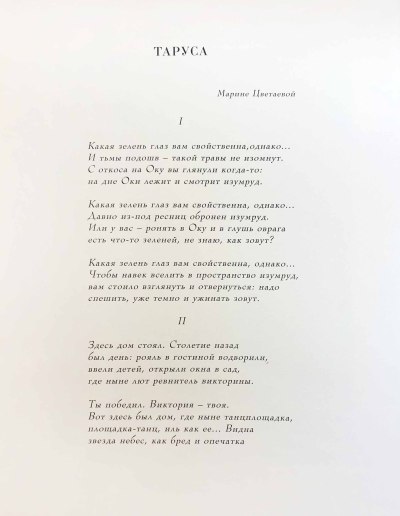 Поэтесса Белла Ахмадулина и театральный художник Борис Мессерер были вместе в течение более тридцати лет и вместе занимались творчеством. Супруги с большим трепетом относились к периоду жизни в городке Таруса и творчеству Марины Цветаевой, это отразилось в их совместно созданном альбоме «Таруса».