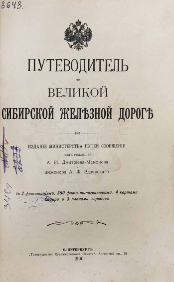 Экземпляр с полным комплектом карт и планов: Томска, Иркутска, Владивостока, железной дороги Челябинск-Байкал, Самаро-Златоустовской дороги, дороги Байкал-Владивосток и картой России.