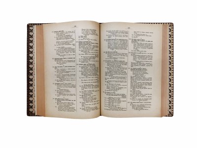 В цельнокожаном переплете с тиснением золотом. Узорные форзацы.