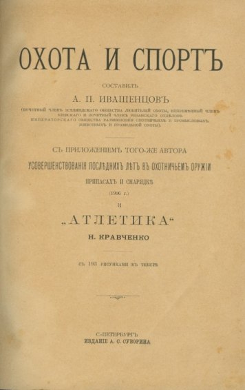 Также, в издания есть два приложения: «Усовершенствования последних лет в охотничьем оружии, припасах и снарядке» А.П. Ивашенцова (1906) и статья Н. Кравченко «Атлетика и борьба».