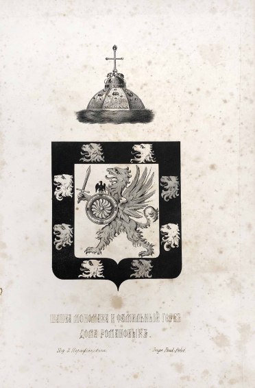 В издании помещены литографированные изображения шапки Мономахи и фамильного герба Романовых, портрета боярина Федора Никитича Романова и всех царей и императоров Романовых, начиная от Михаила Федоровича, заканчивая императором Александром II. Портреты литографированы Борелем.