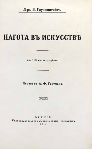 Гаузенштейн прослеживает эволюцию изображения человеческого тела от примитивных фигурок каменного века, выразительных антропоморфных статуэток культуры Кукутень, статуй, украшавших пещерные индуистские храмы, до рисунков Хокусая, гравюр Кунисады и работ европейских мастеров – Гогена, Родена, Ренуара.
