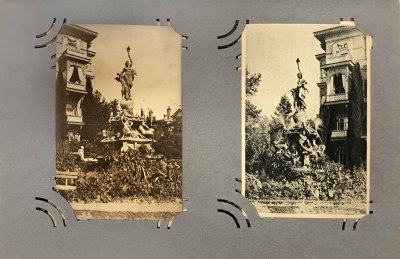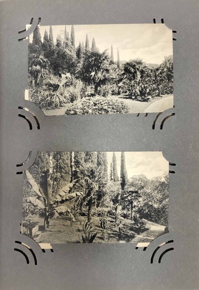 Альбом для фотографий и открыток включает 34 листа с прорезями для углов открыток.