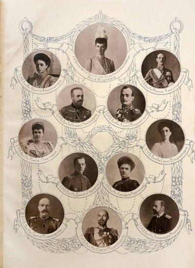 Книгу открывают очерки «Предки царствующего дома», в котором приведена родословная предков Романовых, и «Смутное время». Затем идут очерки, описывающие в хронологическом порядке царствование русских царей, начиная с Михаила Федоровича и заканчивая действующим императором Николаем II. Далее помещены разделы: «Духовенство», «Центральная и местная администрация», «Армия и флот», «Наука, литература и искусство», «Спорт», «Финансы, торговля и промышленность». В этих разделах приведены краткие биографии и портреты выдающихся государственных деятелей, военачальников, учёных, меценатов, медиков, педагогов, представителей искусства, спорта и духовенства, купцов, промышленников и предпринимателей Российской империи конца XIX 0 начала XX веков.