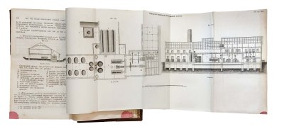 В цельнокожаном переплете ручной работы с тиснением золотом и иллюстрацией. С двумя большими раскладными листами.