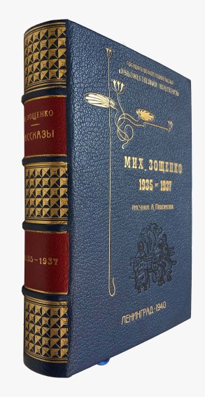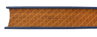 В цельнокожаном переплете ручной работы с тиснением. С золотыми узорными обрезами и иллюстрированными форзацами.